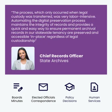 - Automated records transfer from statewide Microsoft 365 tenancy to archives