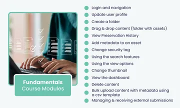 The Fundamentals Course offers a self-paced, certified program that guides you through essential workflows and the basics of Digital Preservation using the powerful & intuitive New Generation of Preservica. Through this course you'll see for yourself how the exciting new innovations combine to deliver the power you need to be more productive and develop the vital Digital Preservation skills you need for your role, enabling you to maximize your use of Preservica’s new interface and build essential skills with confidence.