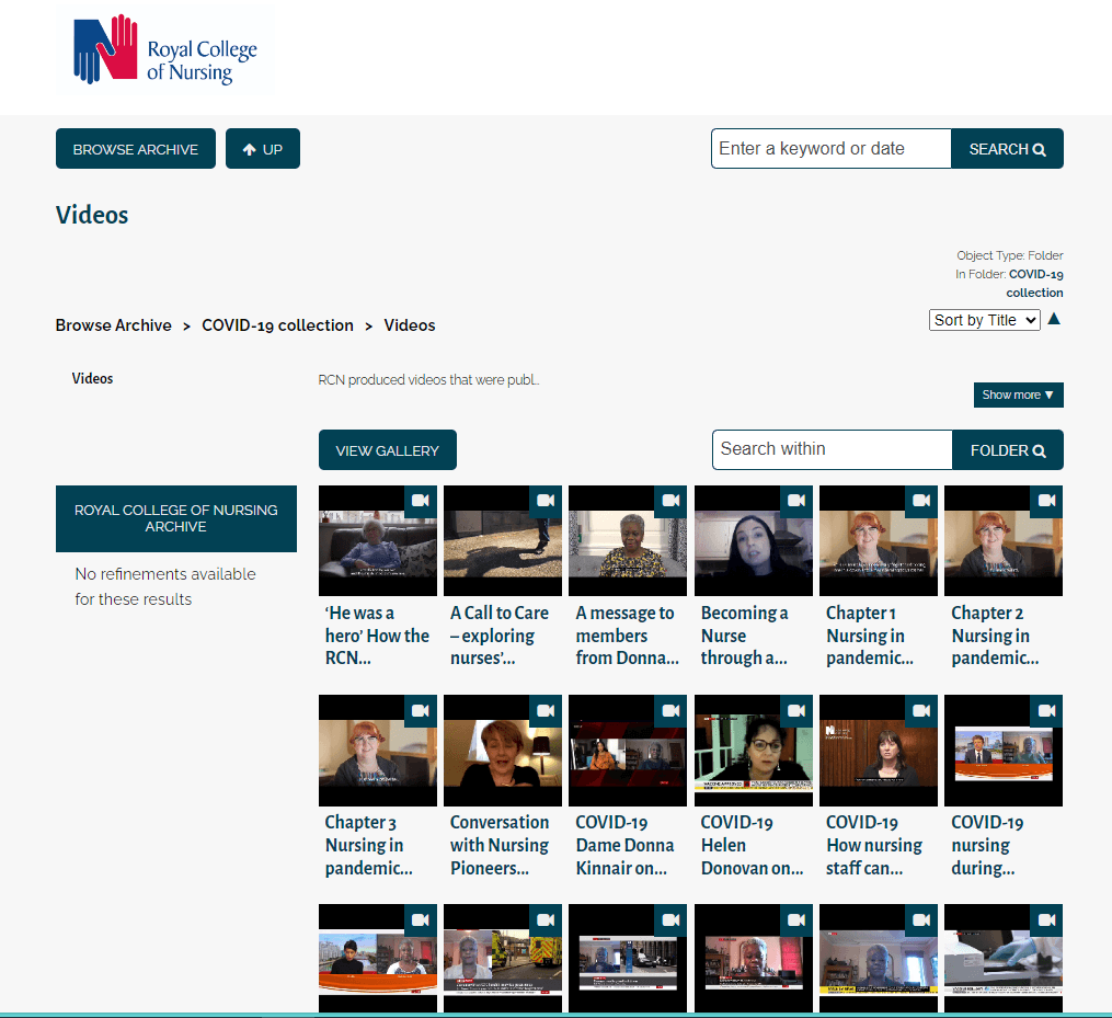 As a response to the pandemic, Preservica launched the #ourcovid19story initiative to support its user community, who were diligently capturing and preserving the pandemic's story for future generations. To aid in this effort, an additional 250GB of free cloud storage was offered, along with extra training and support. This initiative enabled users, such as the RCN, to surpass their goals by gathering approximately 100,000 new digital records related to COVID-19. These records include documents, web pages, and audiovisual files such as position statements, press releases, news stories, and online resources. They are now publicly accessible through the RCN's digital archive page.